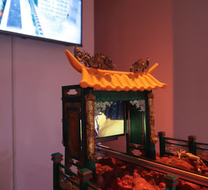 觀眾投入10元硬幣後,軌道裝置便會啟動,始於起點的自製模型車上裝有視訊鏡頭,會將用於裝載受刑人的礦車上的視角,同步投放到大電視上,如同二樓展場的另一件動畫作品《地獄列車指南》一樣,穿梭擺渡在現實世界中的城市與輪迴地獄間。